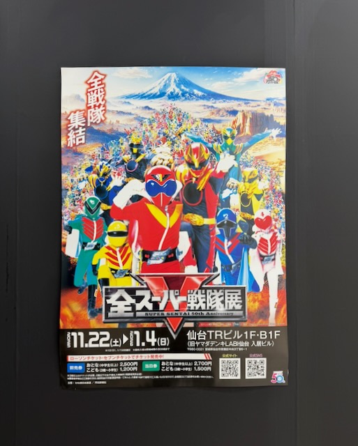 仙台へ。見逃していた全スーパー戦隊展へ。空いていて楽に見られた。
