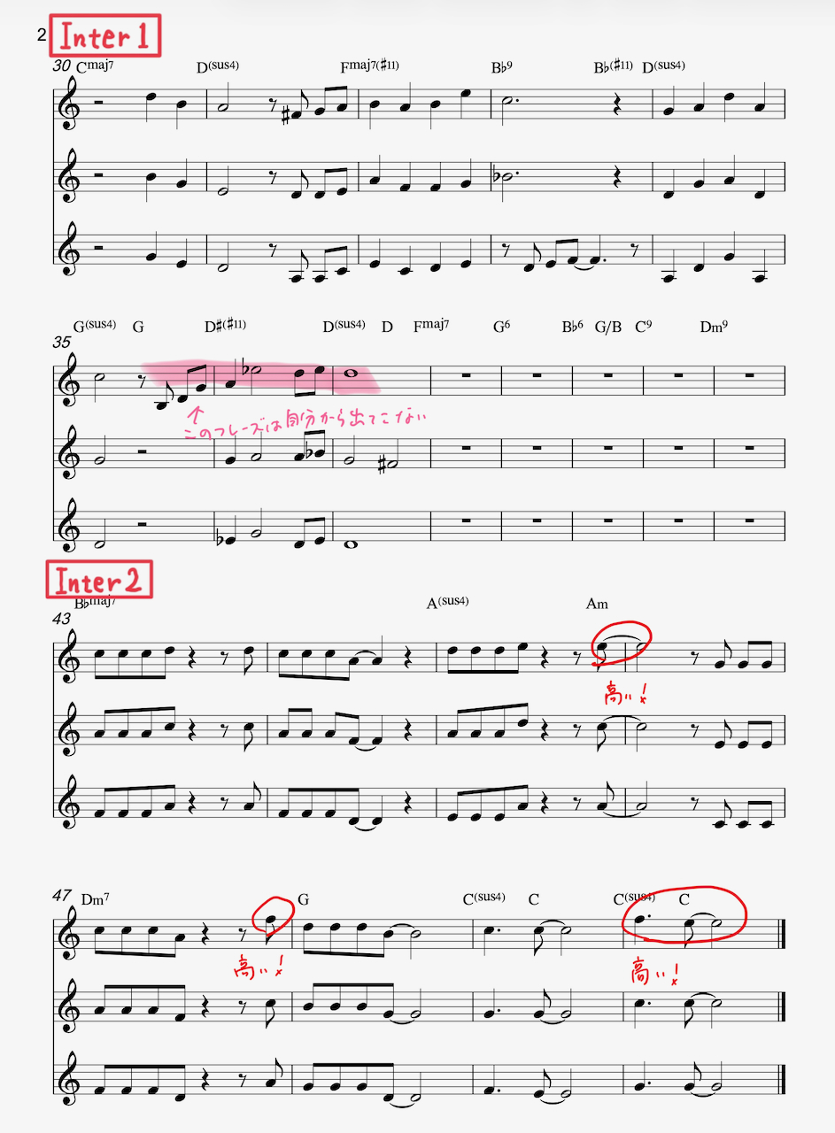 特に気に入っているのは、西岡君が作ったInterludeのコーラス。ストリングスと絡むコーラスの心地良さはもちろん、2Aに戻る前の展開が自分からは出てこないフレーズだったので面白く、ちょっと悔しかった。悔しさはマイナスの感情ではなく、天晴れですというプラスの感情。この悔しさを感じながらの制作がとても幸せです。