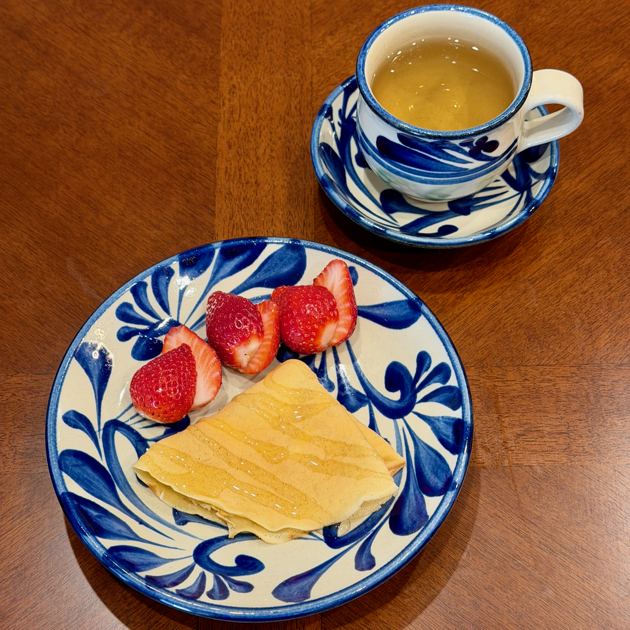 気疲れのせいにするけど、身体が甘い物を欲している。なんとなくクレープが食べたくなったので作る。ハム&チーズ、梅ジャム、3枚目のクリームチーズ&蜂蜜で日記用に写真を撮ることを思いだした。
