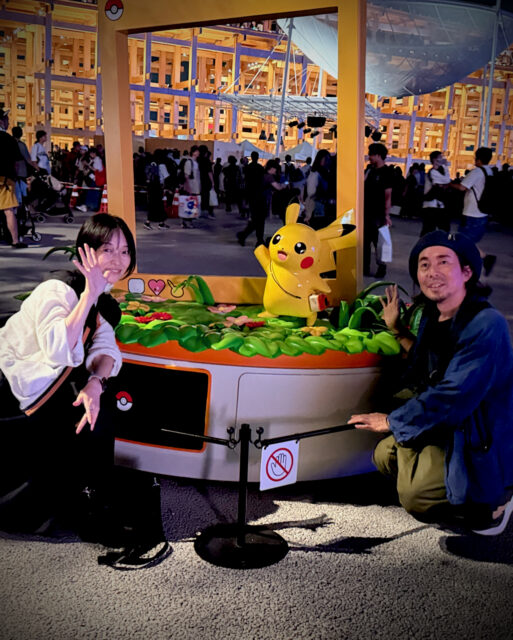 9月のことですが、大阪万博に行ってきました。デザイナー水口智彦さん、映像大野瑞稀さんと映像研究の旅。ピカチュウと撮りたい!水口さんも一緒にっ!大野君撮って!と興奮して騒ぐ私にいつも冷静に対応する大野君は、この旅メンバーの中で一番大人です。