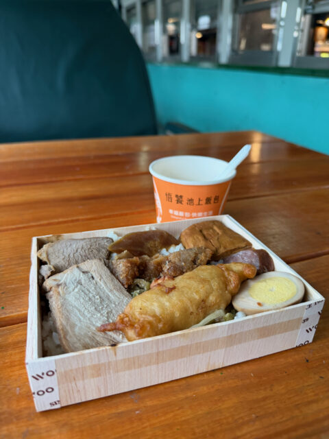 台湾鉄道で、米どころの池上まで行って池上飯包食べたり。お肉が色々乗っていて美味しい。